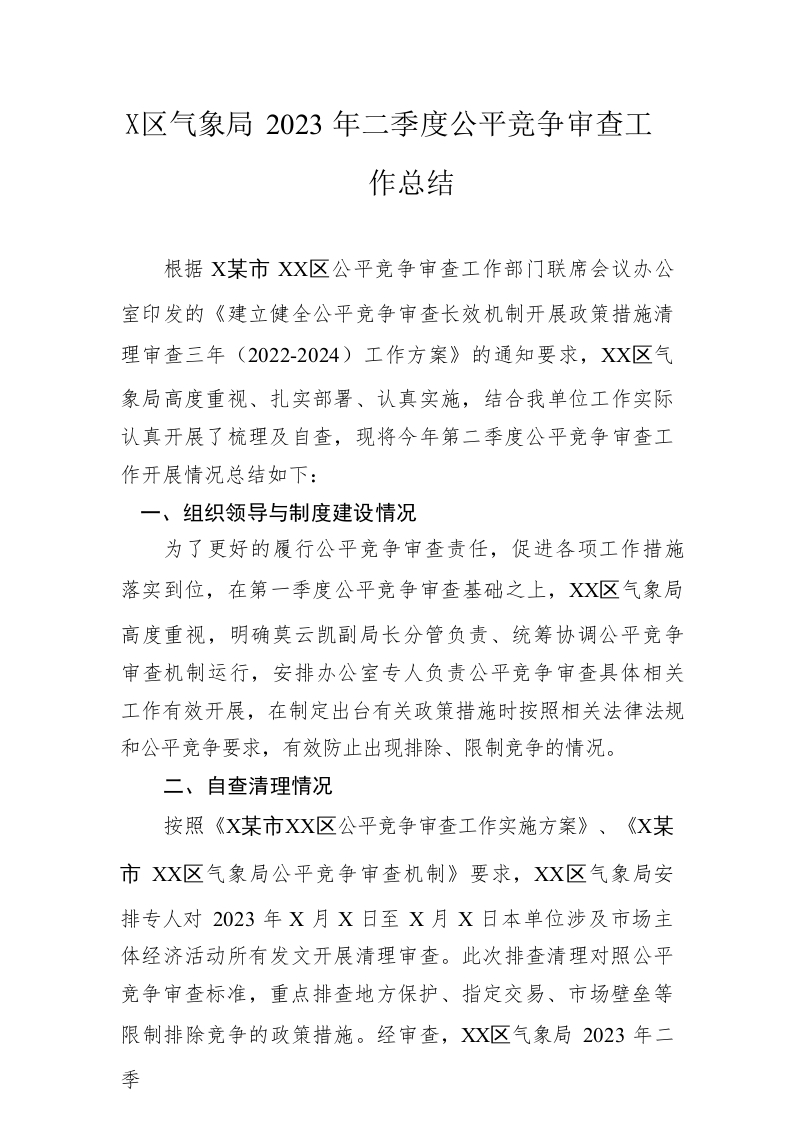 / 区气象局2023年二季度公平竞争审查工作总结(20230615)