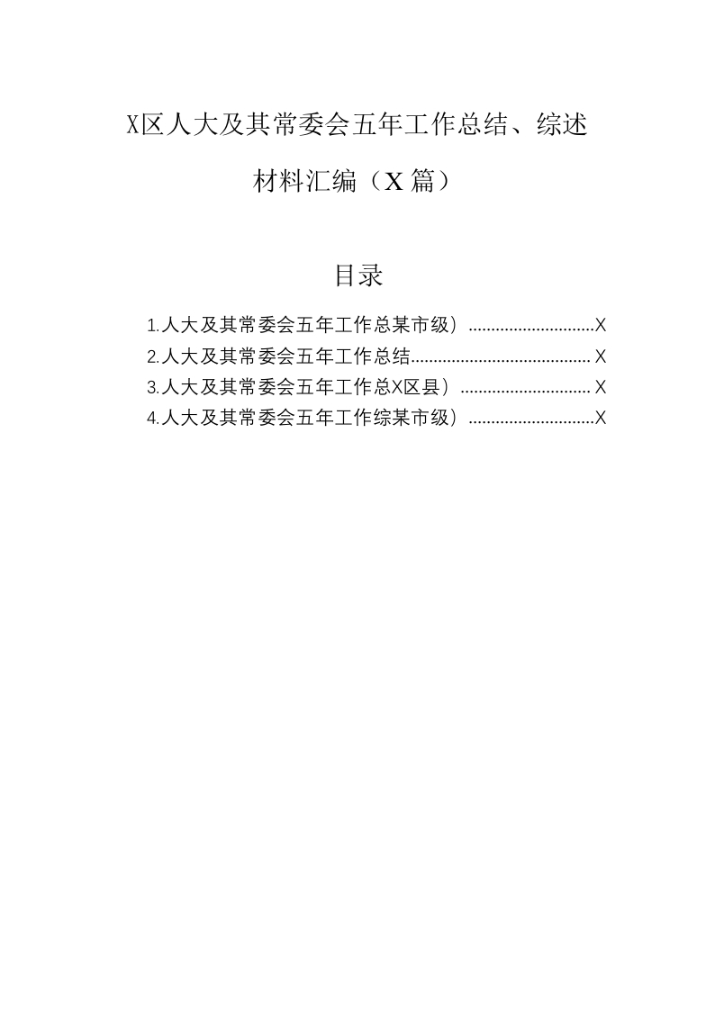 / 区人大及其常委会五年工作总结、综述材料汇编(4篇)