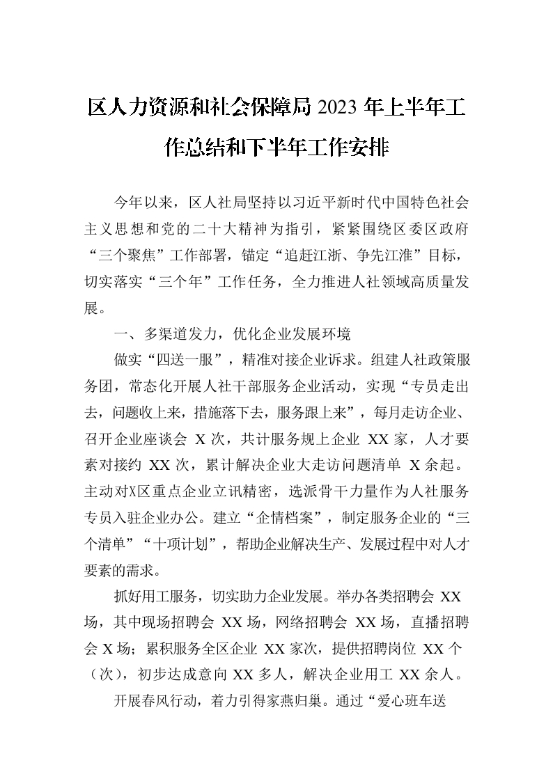 / 区人力资源和社会保障局2023年上半年工作总结和下半年工作安排(20230707)