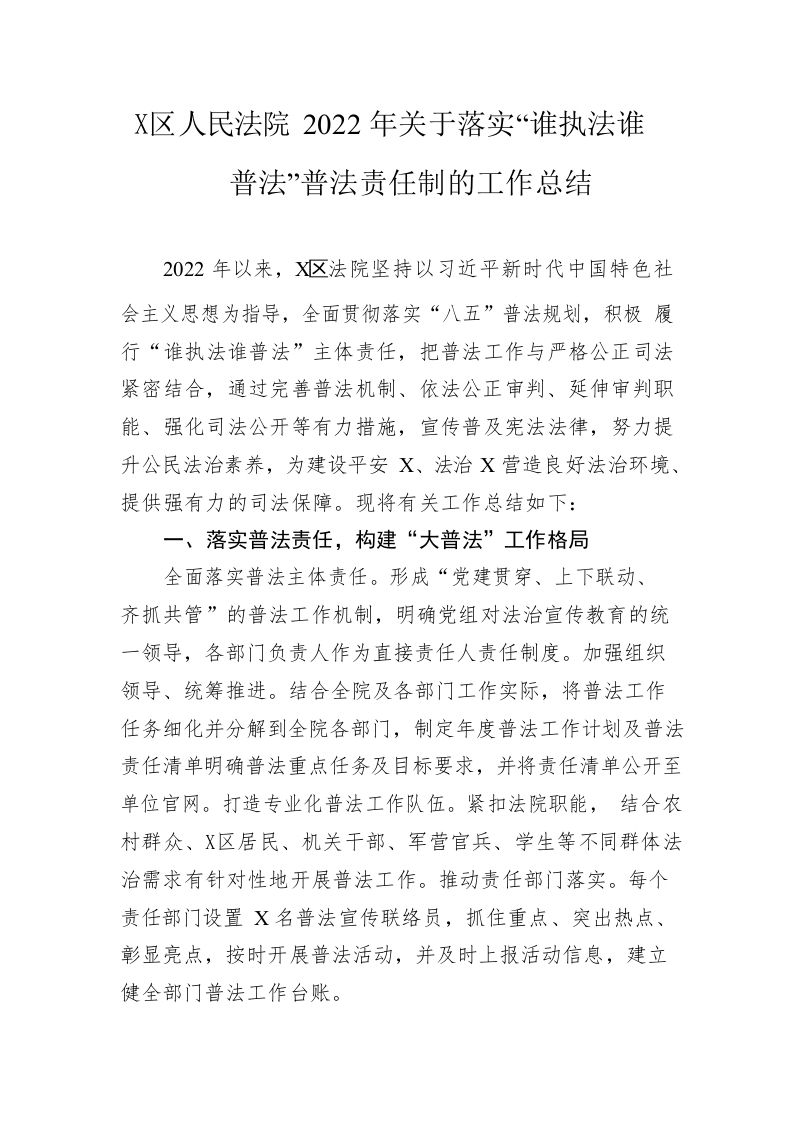 / 区人民法院2022年关于落实“谁执法谁普法”普法责任制的工作总结