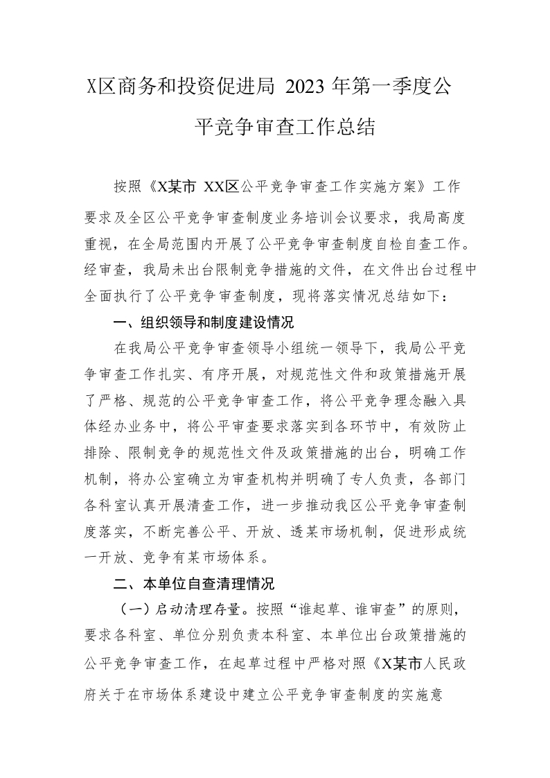 / 区商务和投资促进局2023年第一季度公平竞争审查工作总结