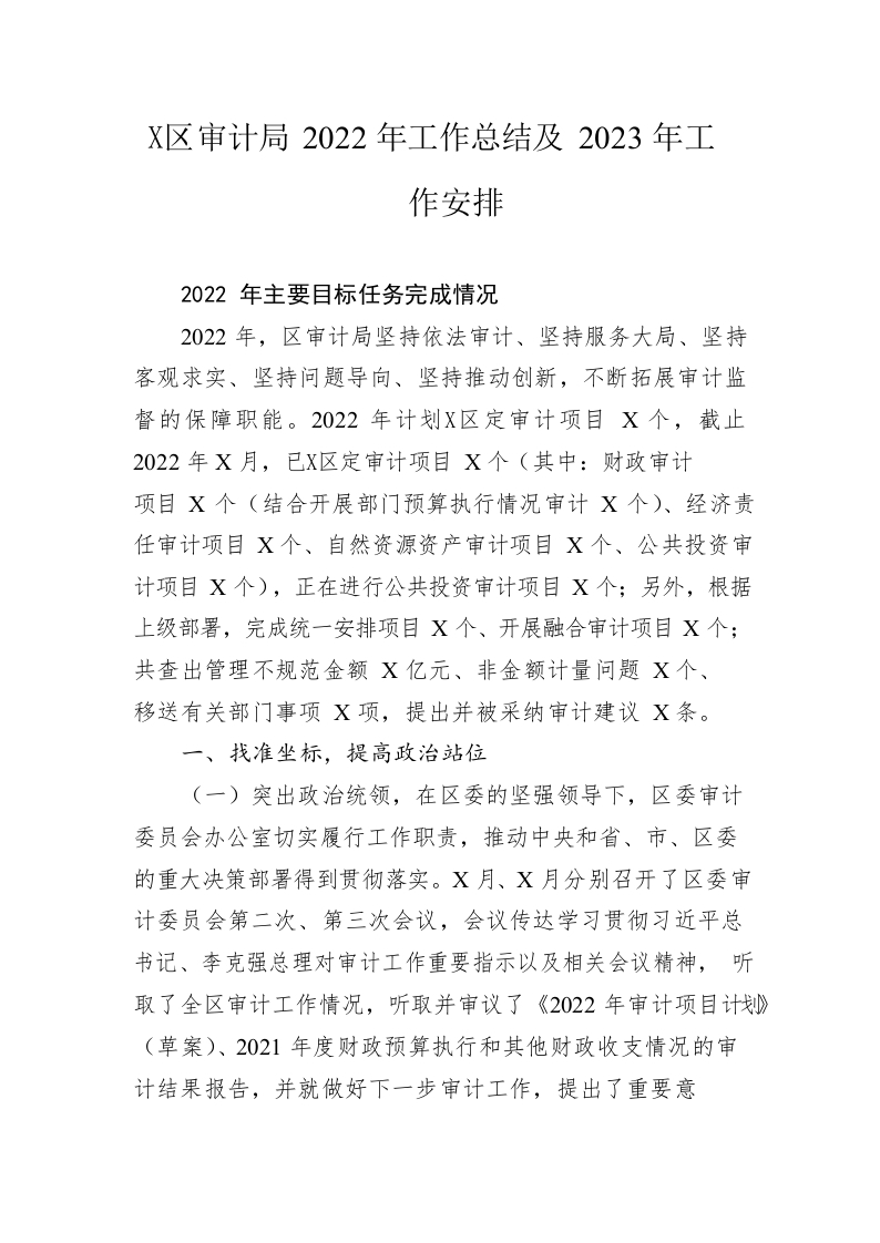 / 区审计局2022年工作总结及2023年工作安排