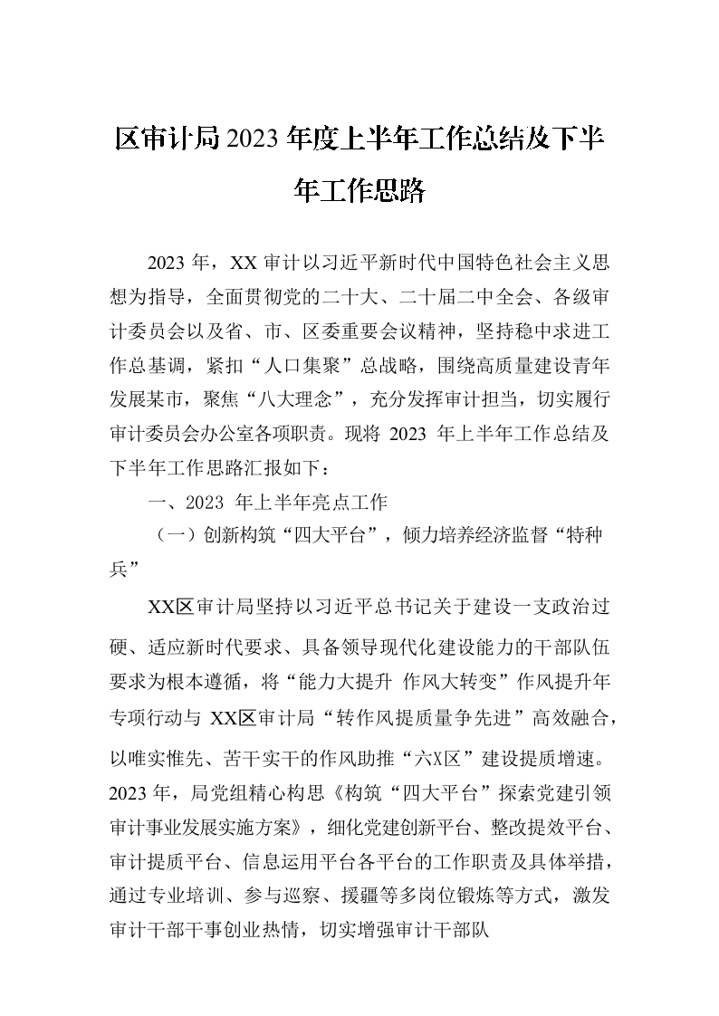 / 区审计局2023年度上半年工作总结及下半年工作思路(20230701)