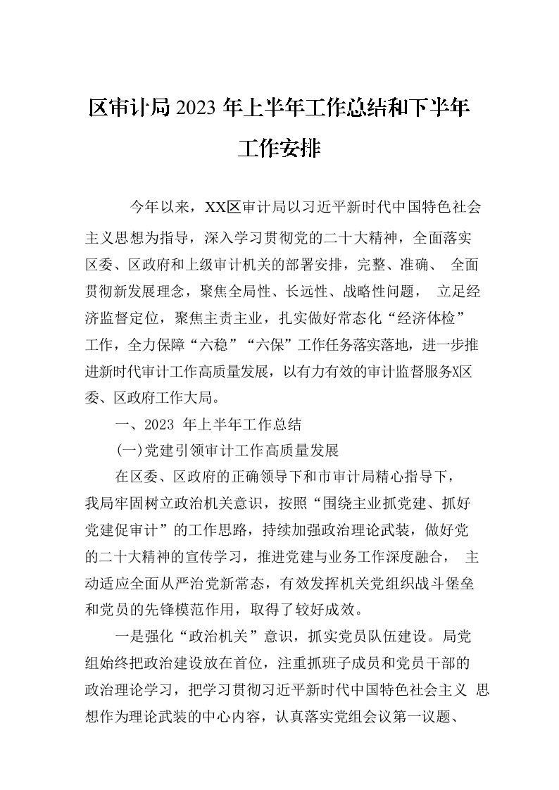 / 区审计局2023年上半年工作总结和下半年工作安排