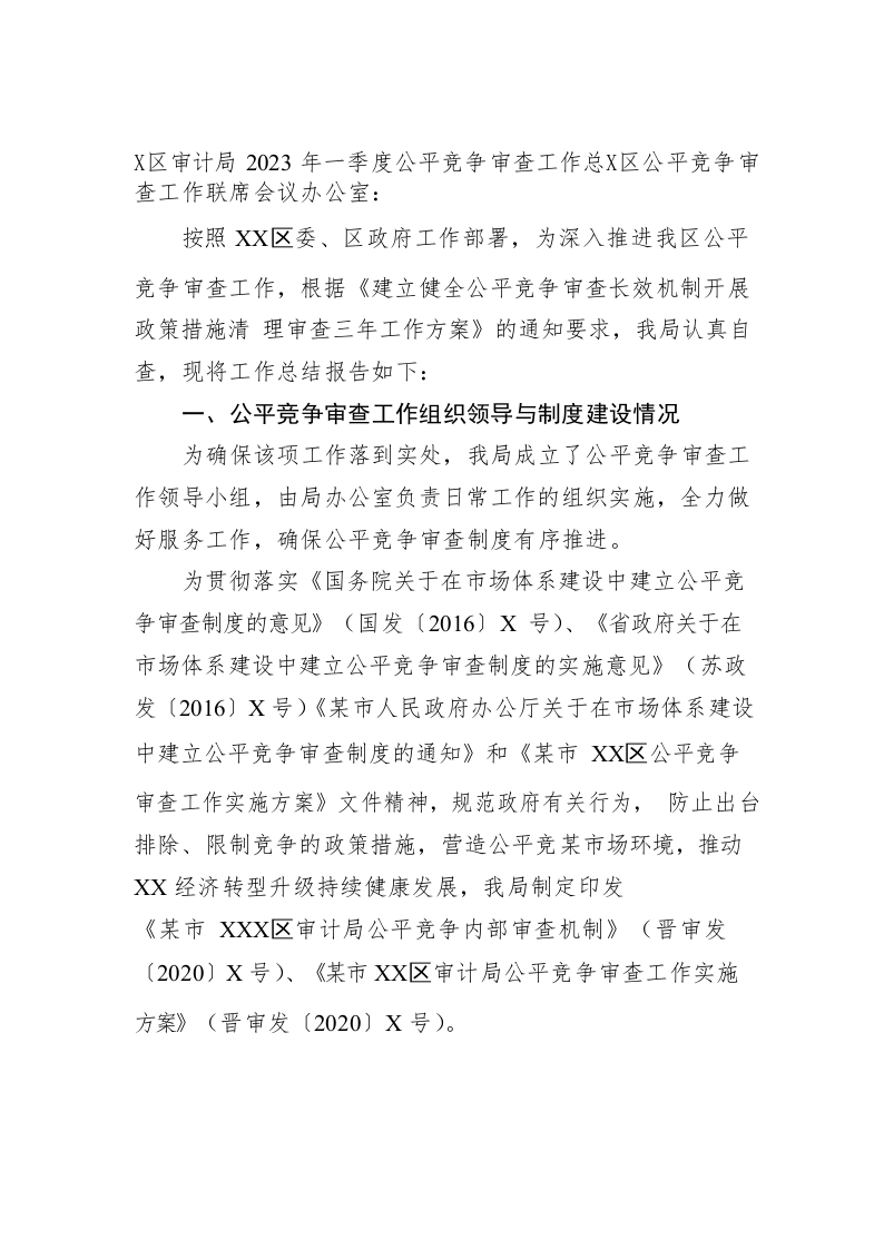 / 区审计局2023年一季度公平竞争审查工作总结