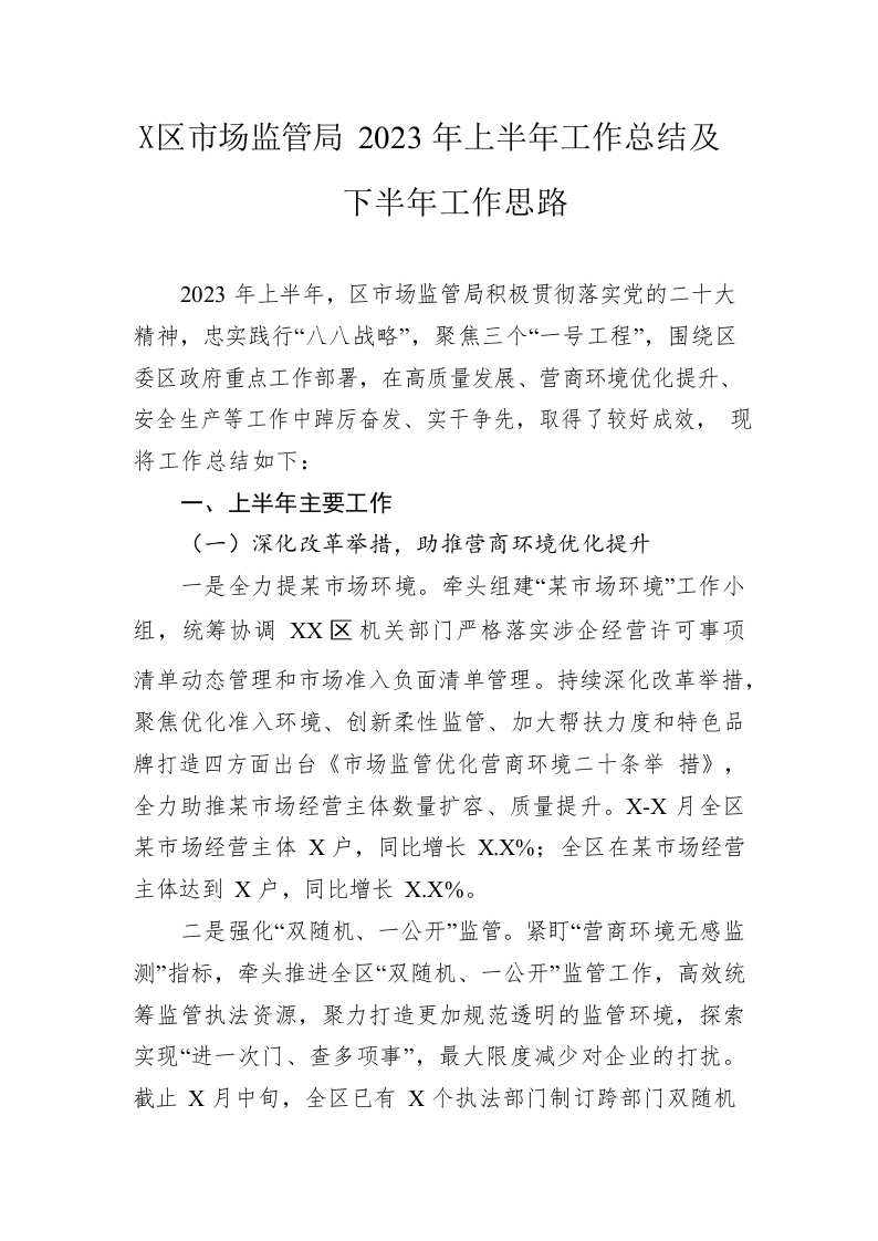 区市场监管局2023年上半年工作总结及下半年工作思路(20230630)