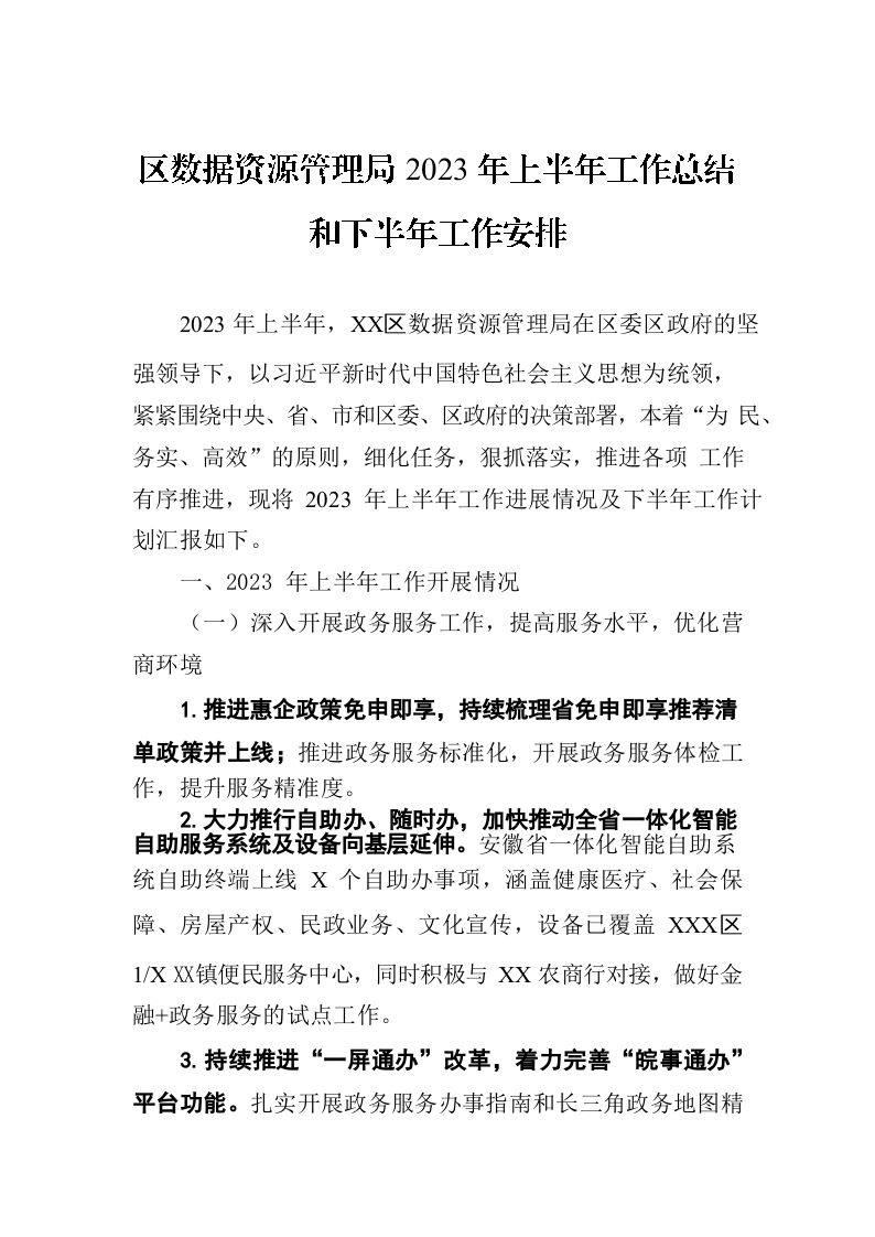 / 区数据资源管理局2023年上半年工作总结和下半年工作安排