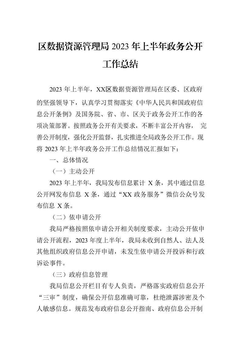 / 区数据资源管理局2023年上半年政务公开工作总结(20230710)