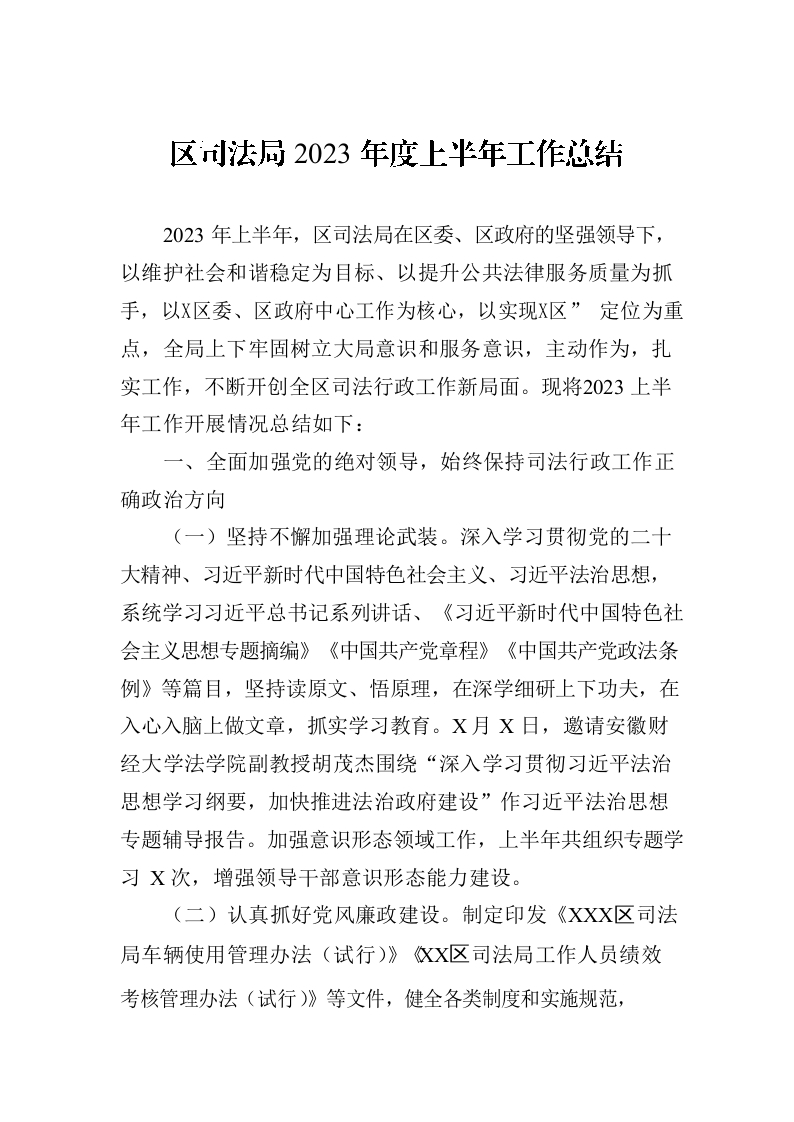 / 区司法局2023年度上半年工作总结(20230706)