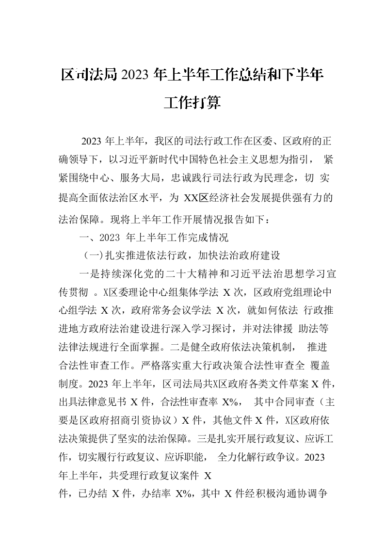 / 区司法局2023年上半年工作总结和下半年工作打算(20230706)