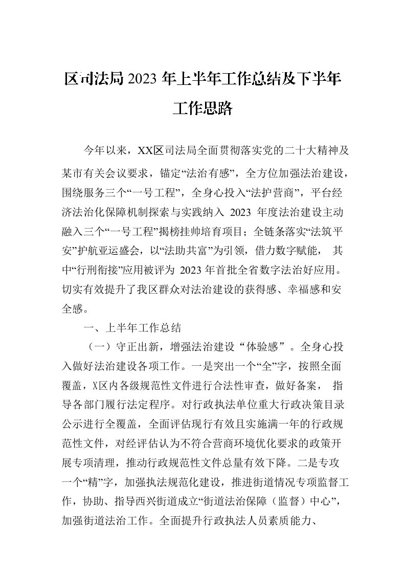 / 区司法局2023年上半年工作总结及下半年工作思路(20230704)