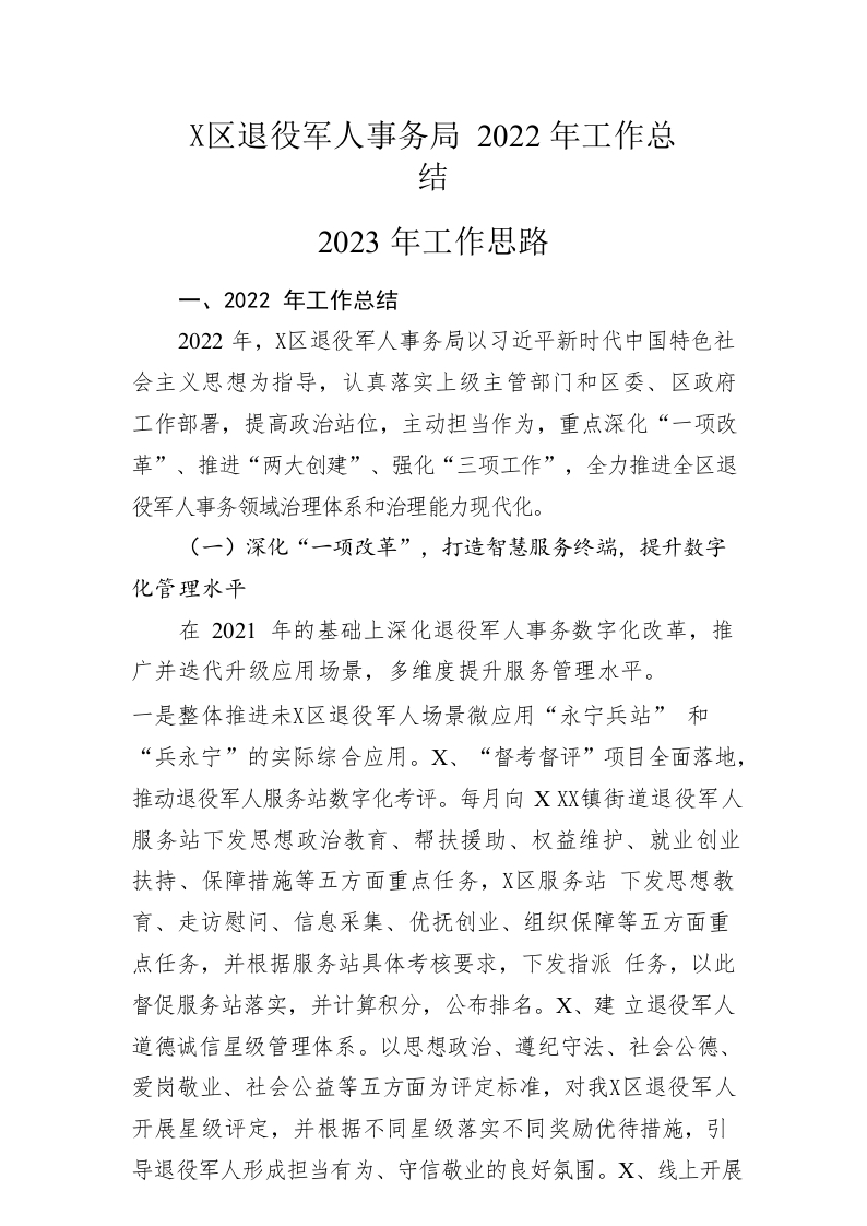 / 区退役军人事务局2022年工作总结2023年工作思路