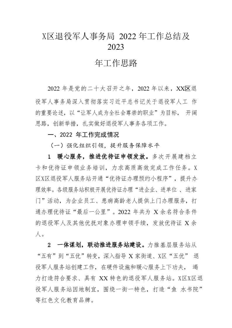 / 区退役军人事务局2022年工作总结及2023年工作思路