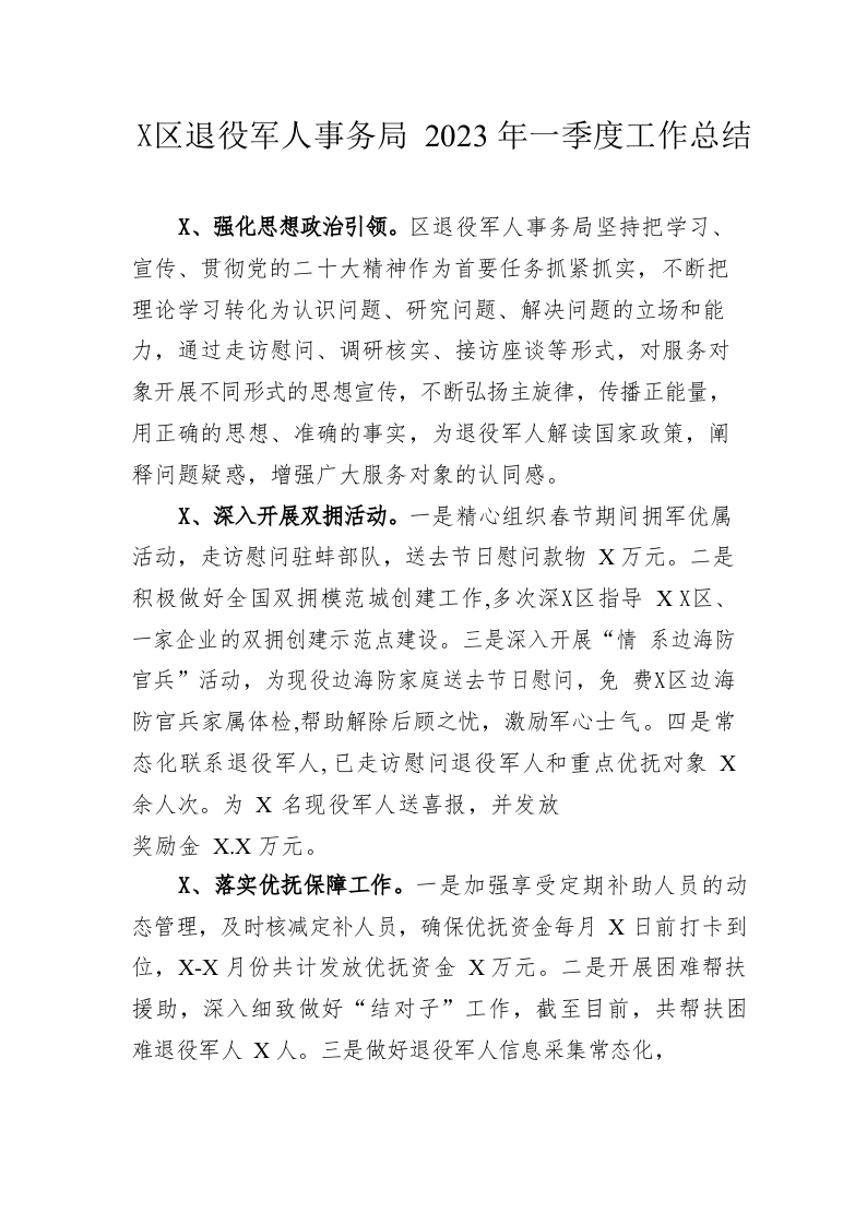 / 区退役军人事务局2023年一季度工作总结(20230515)