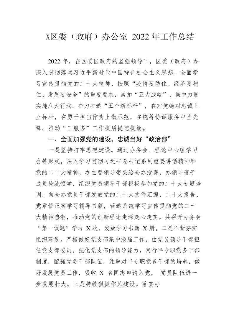 / 区委(政府)办公室2022年工作总结