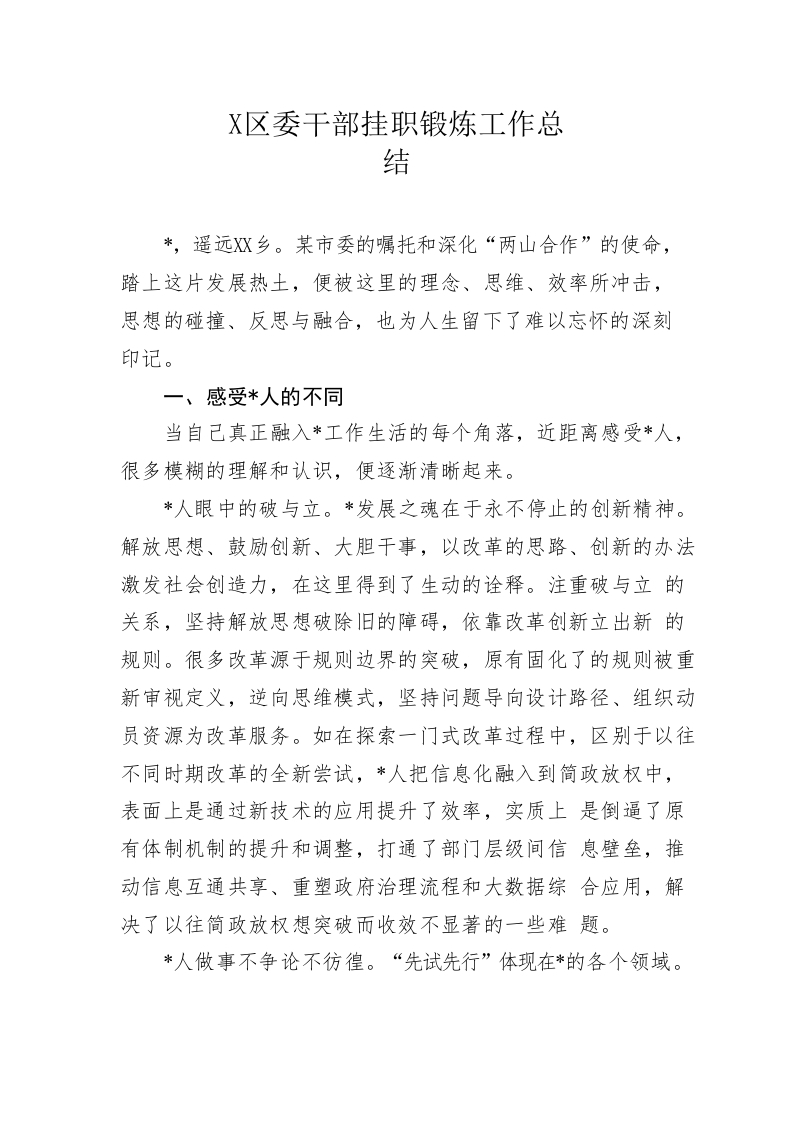 / 区委干部挂职锻炼工作总结