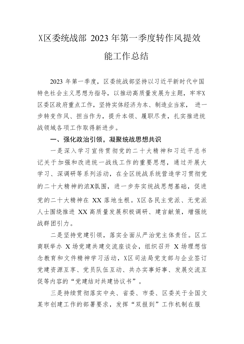 / 区委统战部2023年第一季度转作风提效能工作总结