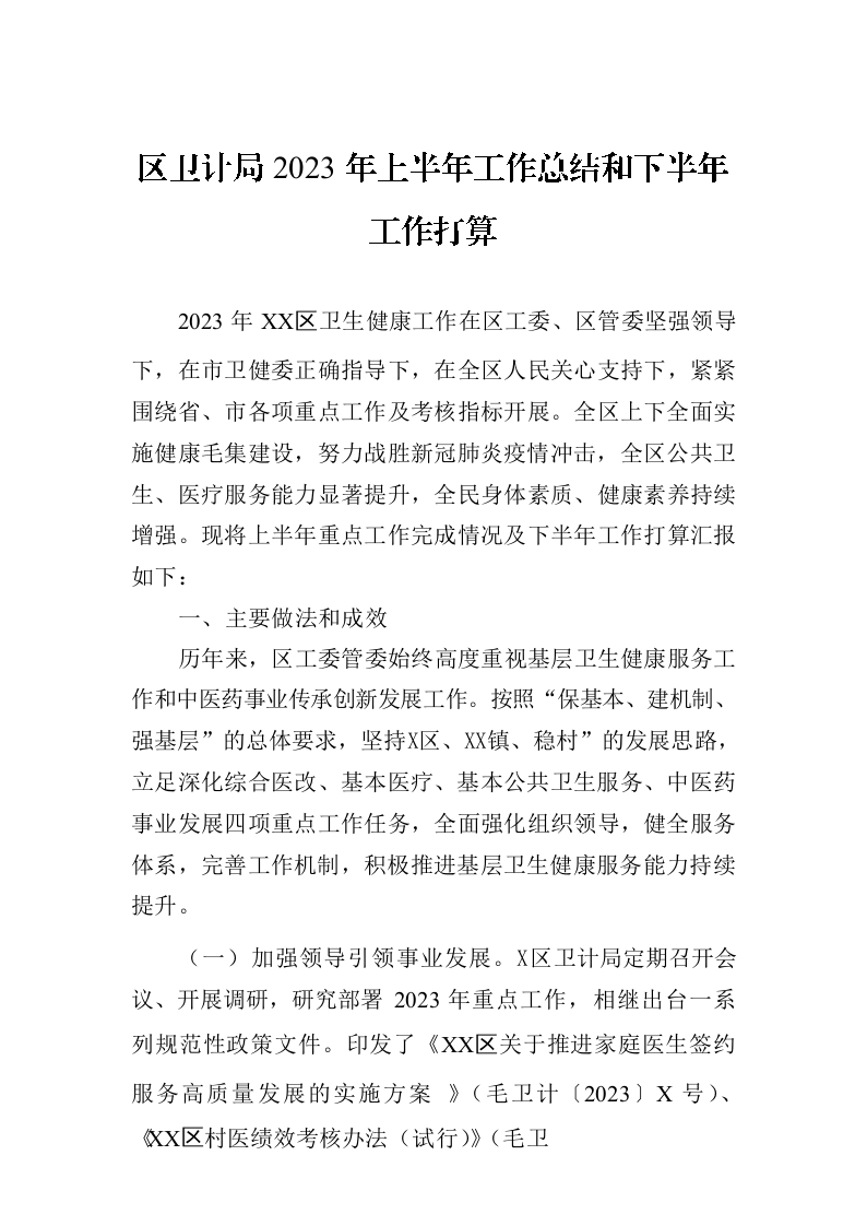 / 区卫计局2023年上半年工作总结和下半年工作打算(20230905)