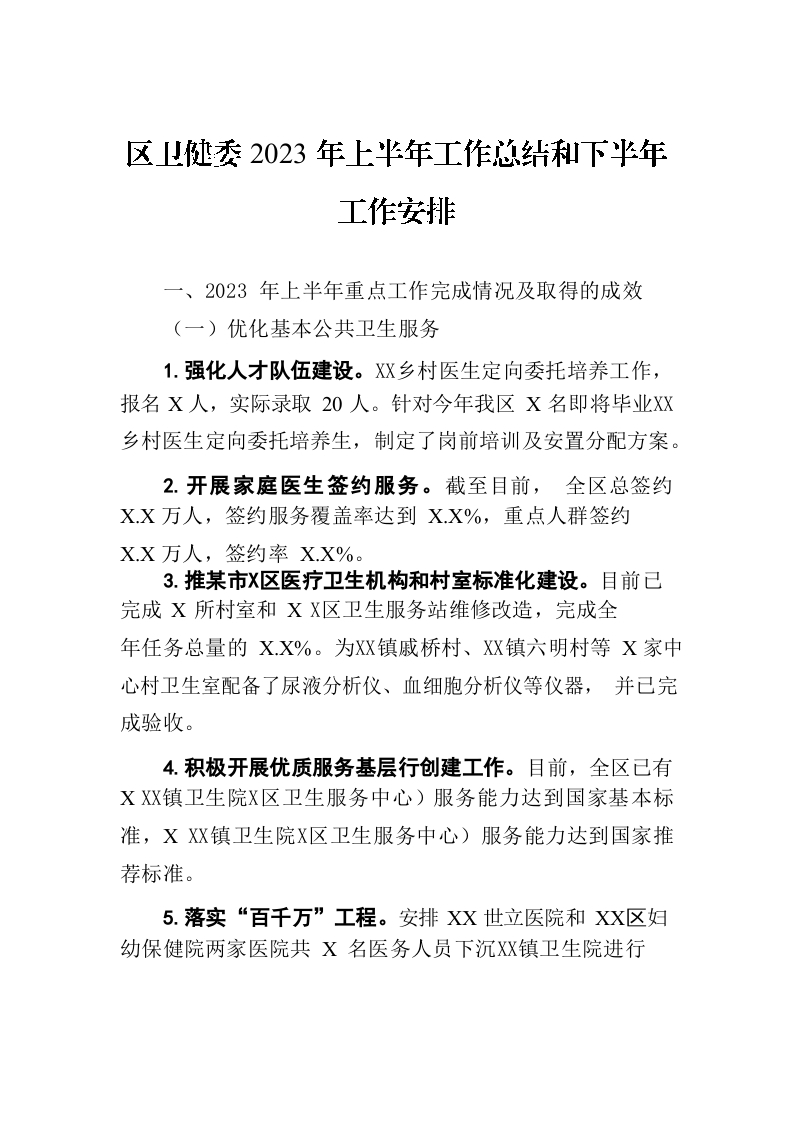 区卫健委2023年上半年工作总结和下半年工作安排(20230704)