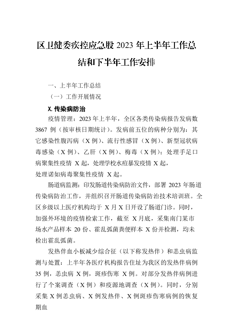 / 区卫健委疾控应急股2023年上半年工作总结和下半年工作安排(20230704)