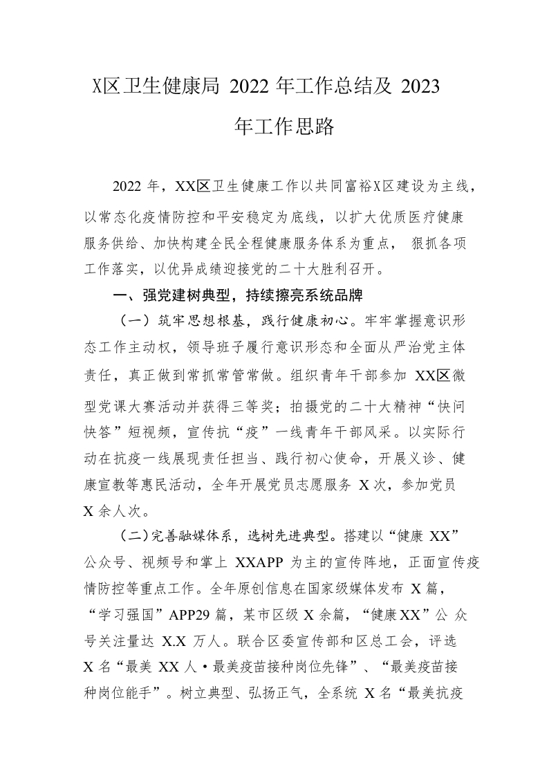 / 区卫生健康局2022年工作总结及2023年工作思路