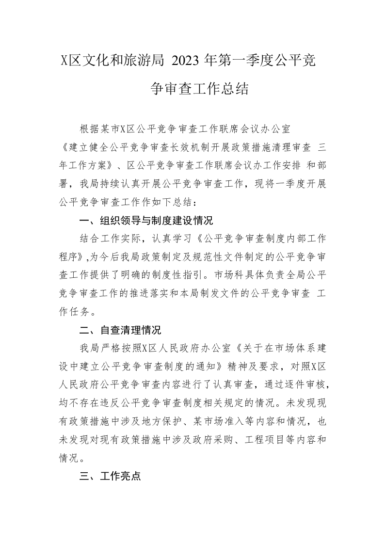 / 区文化和旅游局2023年第一季度公平竞争审查工作总结
