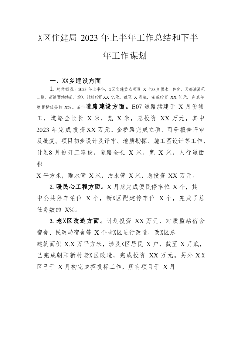 / 区住建局2023年上半年工作总结和下半年工作谋划(20230627)