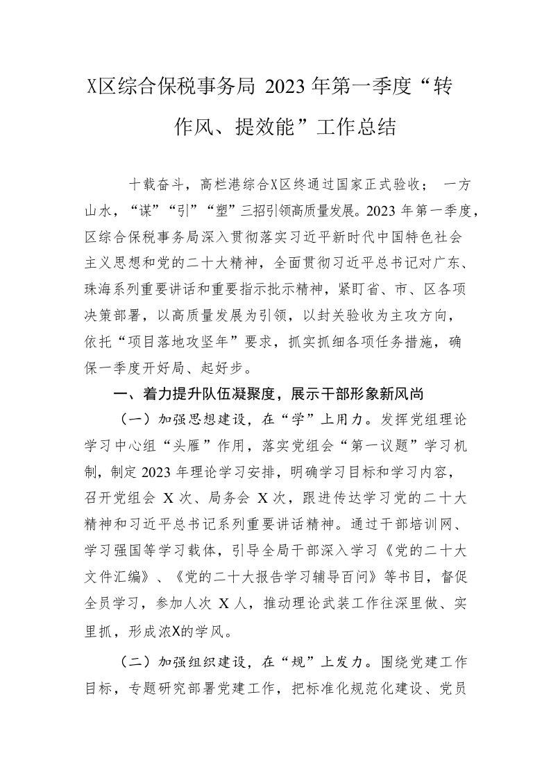 / 区综合保税事务局2023年第一季度“转作风、提效能”工作总结