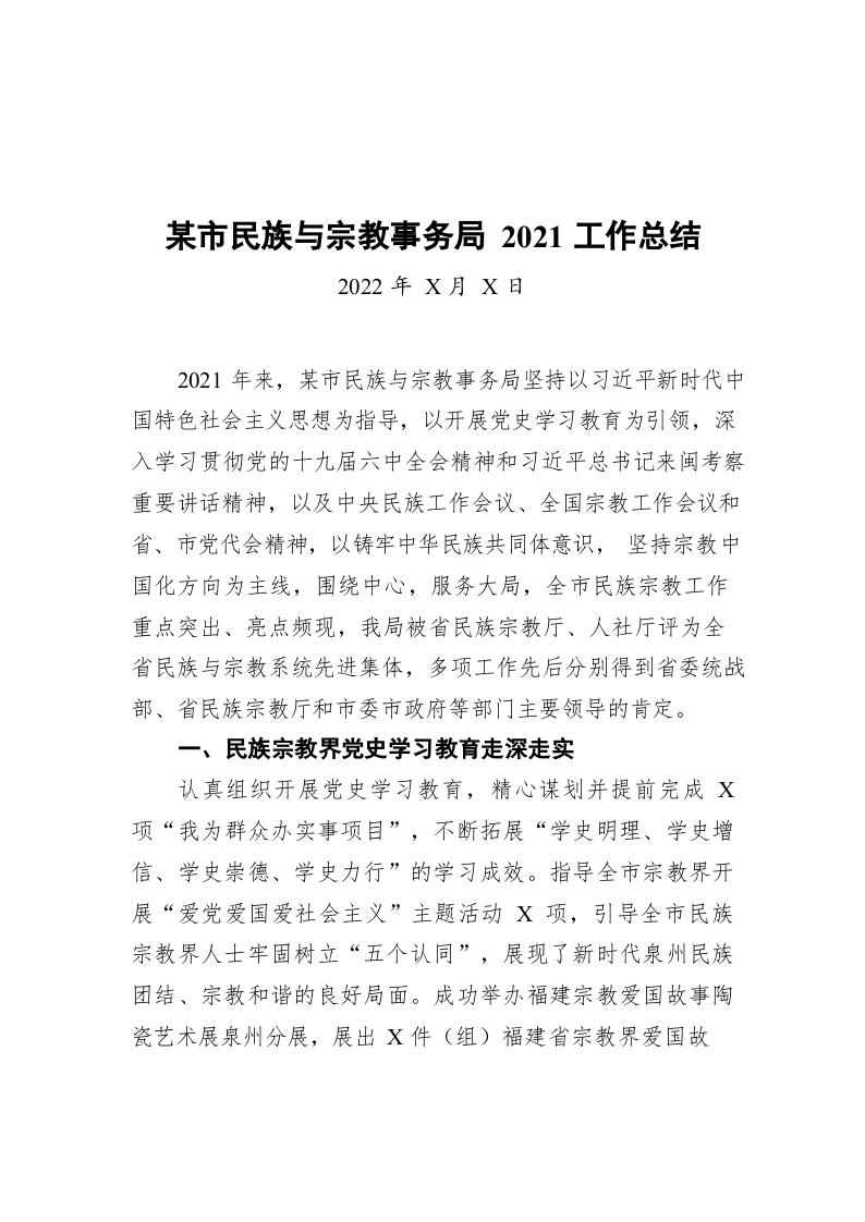 / 泉州市民族与宗教事务局2021工作总结(20220516)
