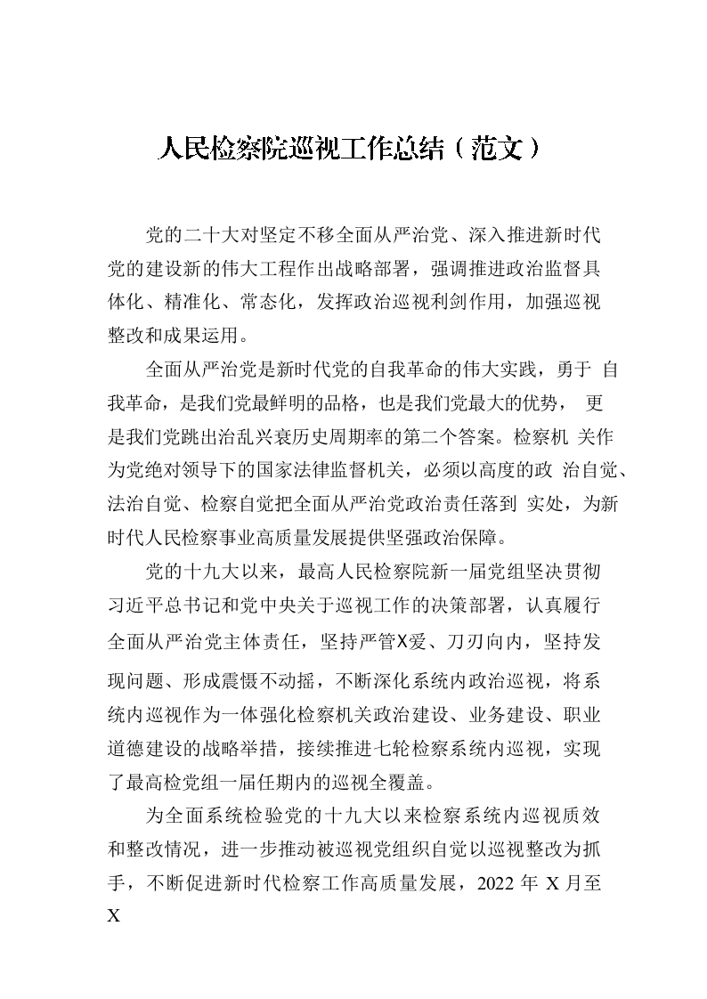 / 人民检察院巡视工作总结(范文)