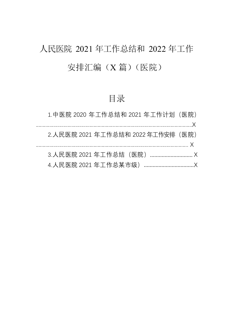 / 人民医院2021年工作总结和2022年工作安排汇编(4篇)(医院)