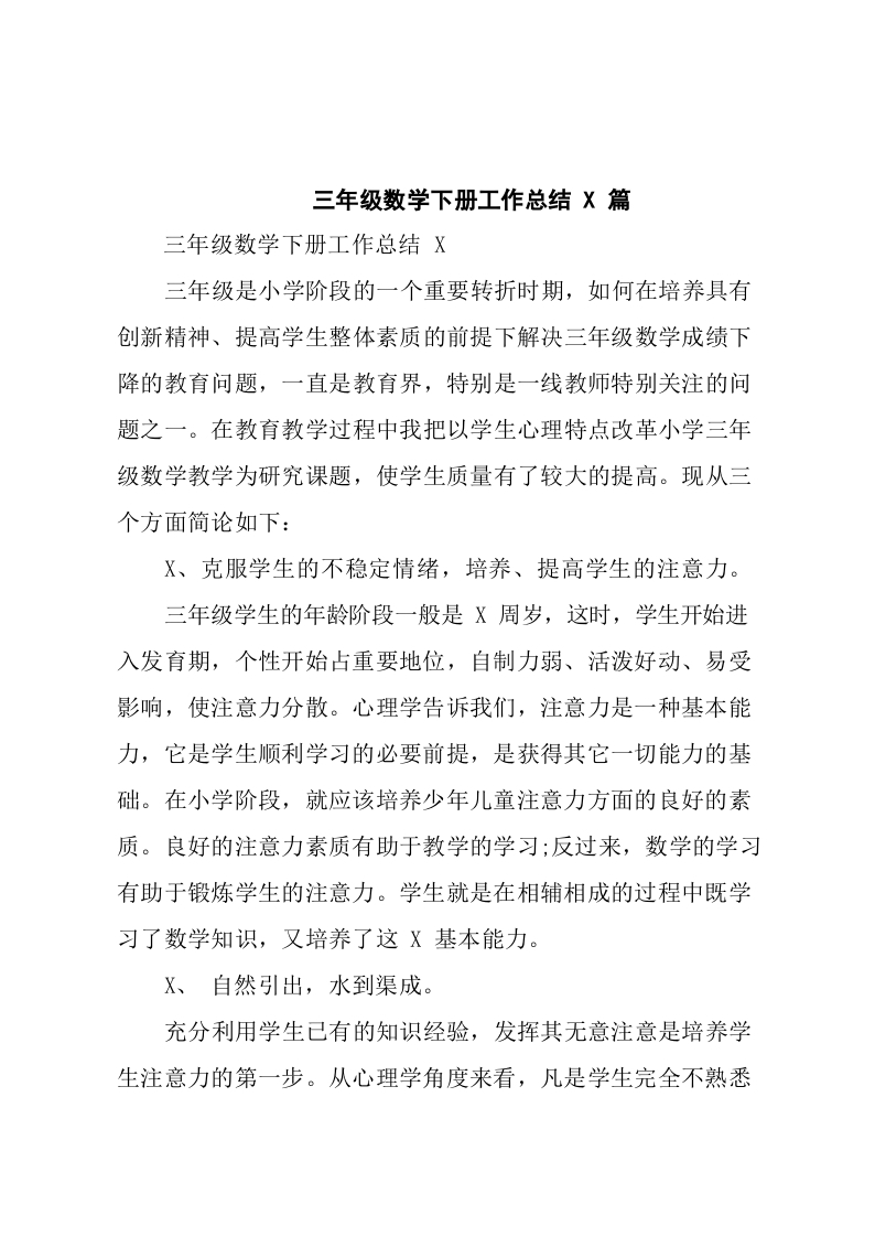 / 三年级数学下册工作总结5篇(学校)