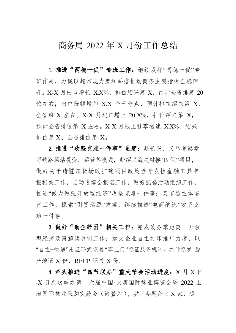/ 商务局2022年10月份工作总结