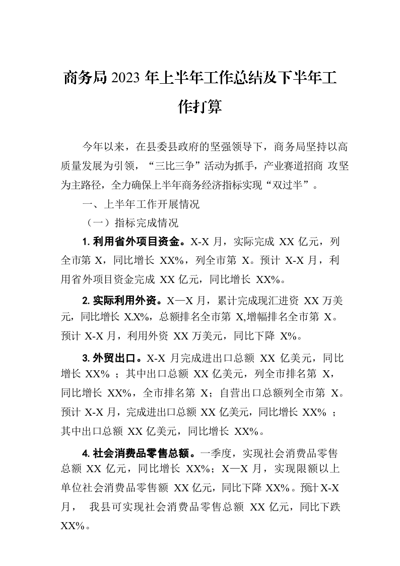 / 商务局2023年上半年工作总结及下半年工作打算