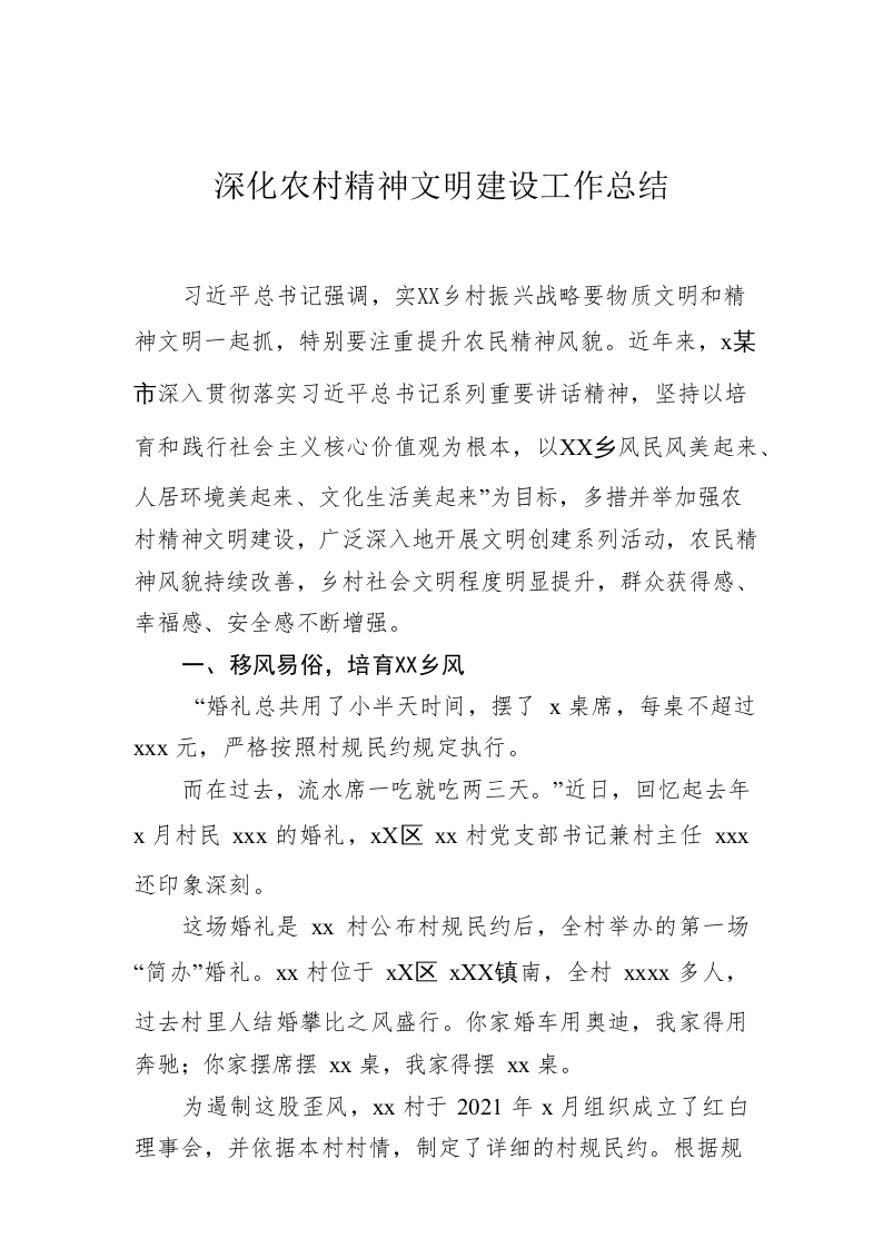 / 深化农村精神文明建设工作总结