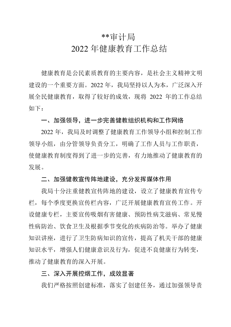 / 审计局2022年健康教育工作总结