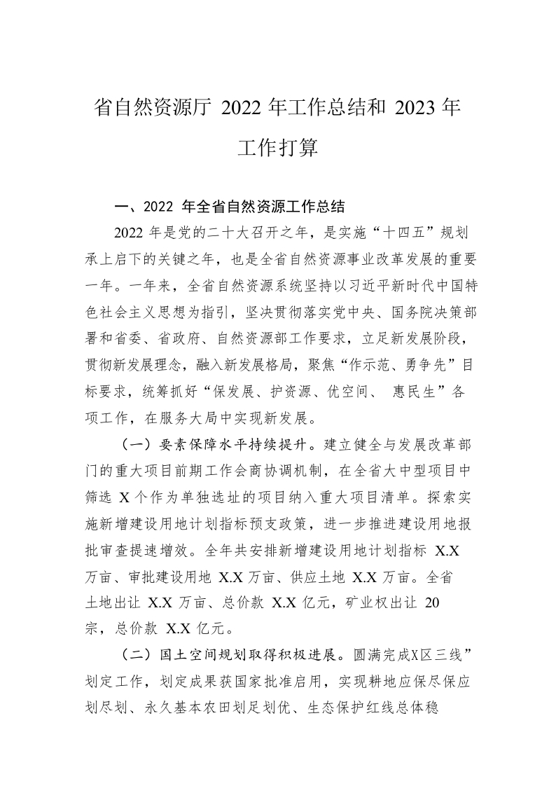 / 省自然资源厅2022年工作总结和2023年工作打算
