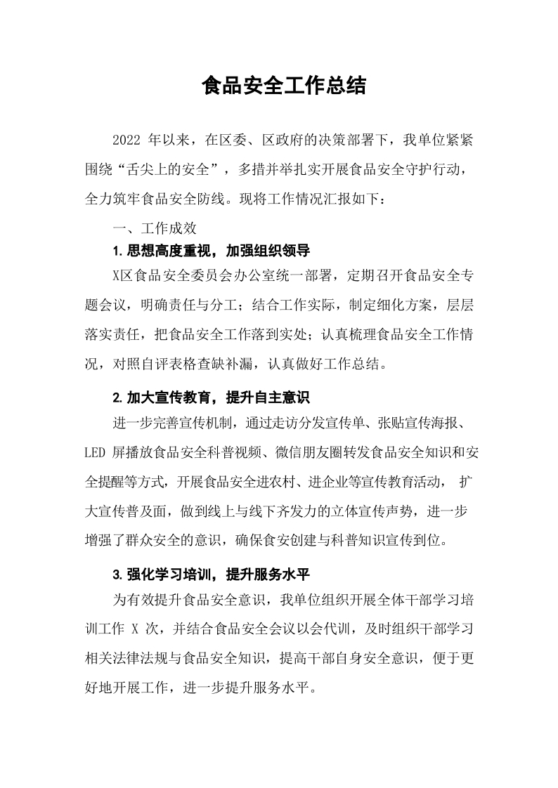 食品安全工作总结