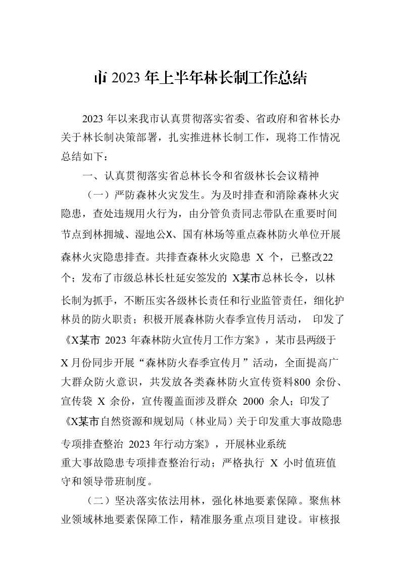 / 市2023年上半年林长制工作总结(20230704)