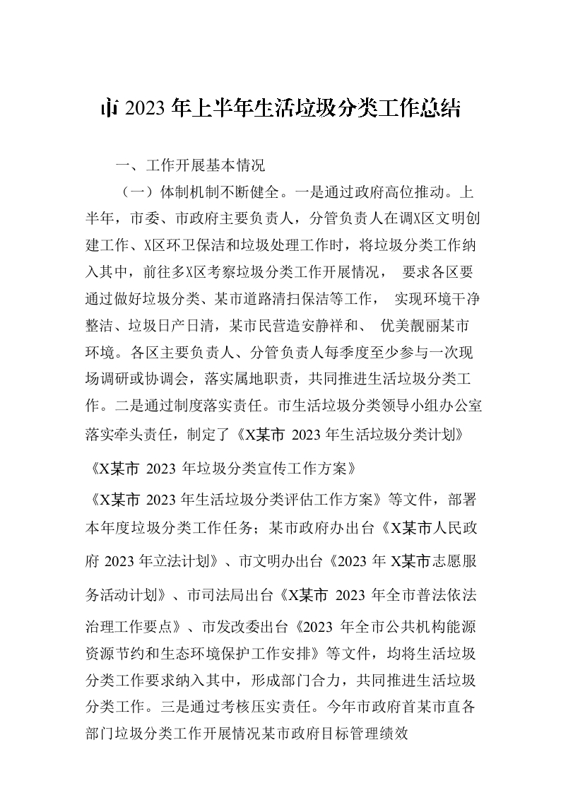/ 市2023年上半年生活垃圾分类工作总结(20230710)