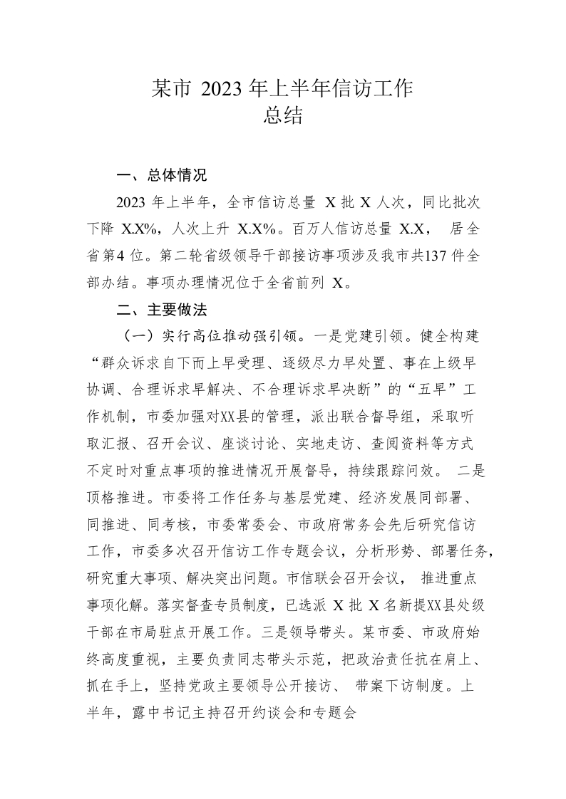 / 市2023年上半年信访工作总结(20230627)
