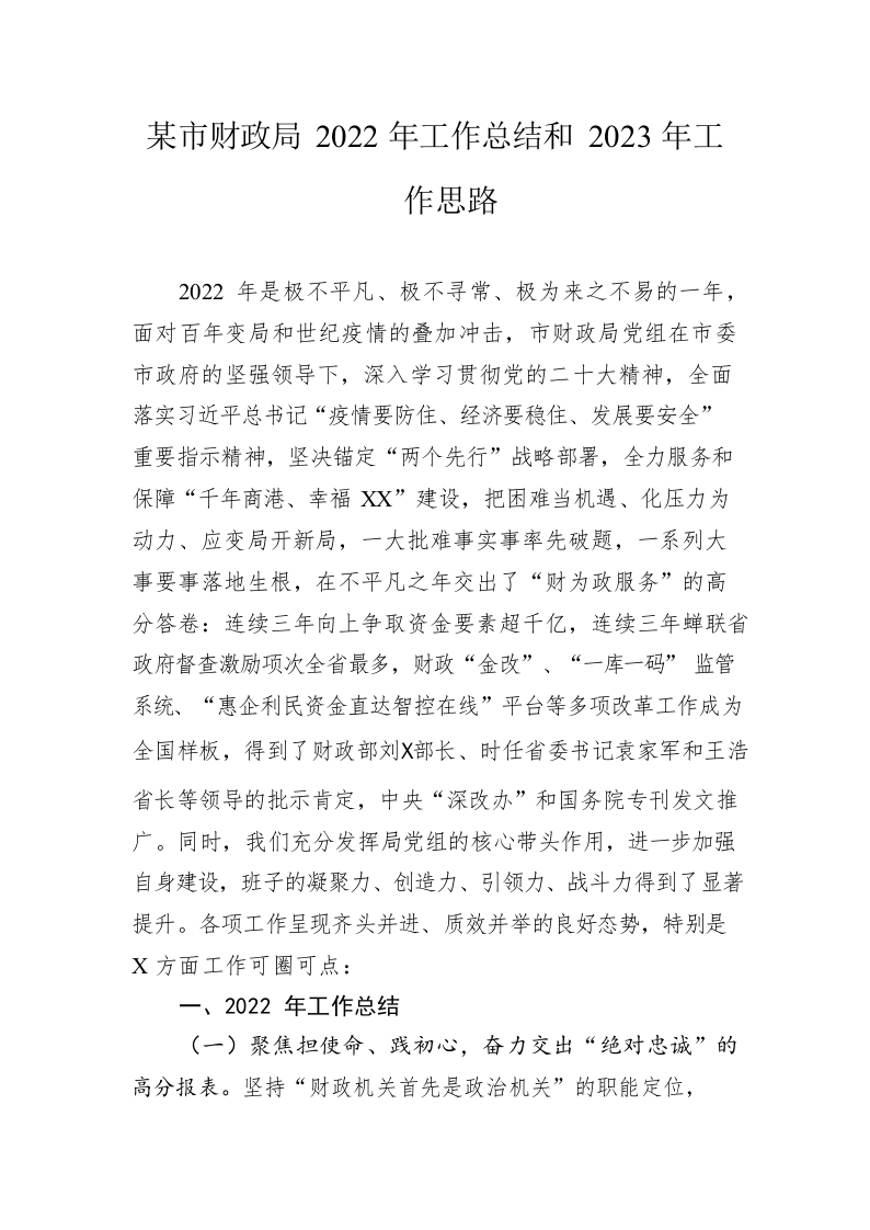 / 市财政局2022年工作总结和2023年工作思路
