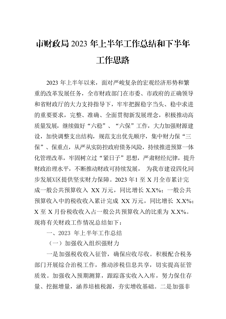 / 市财政局2023年上半年工作总结和下半年工作思路