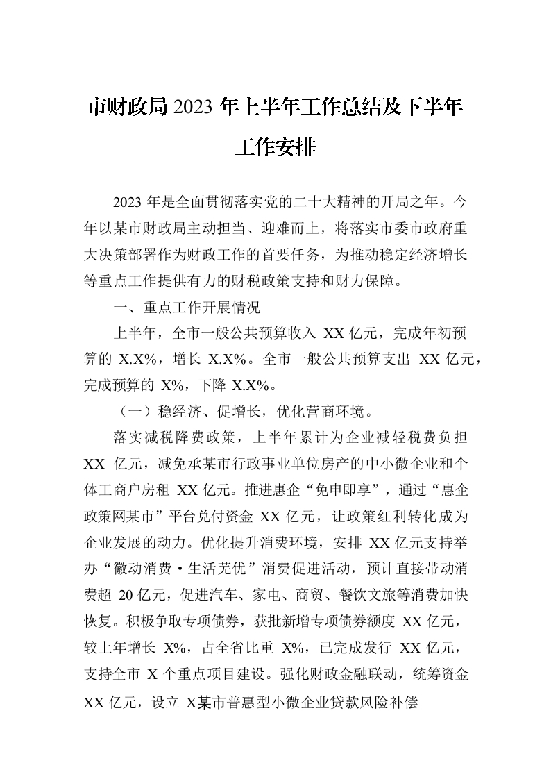 市财政局2023年上半年工作总结及下阶段工作思路(20230630)