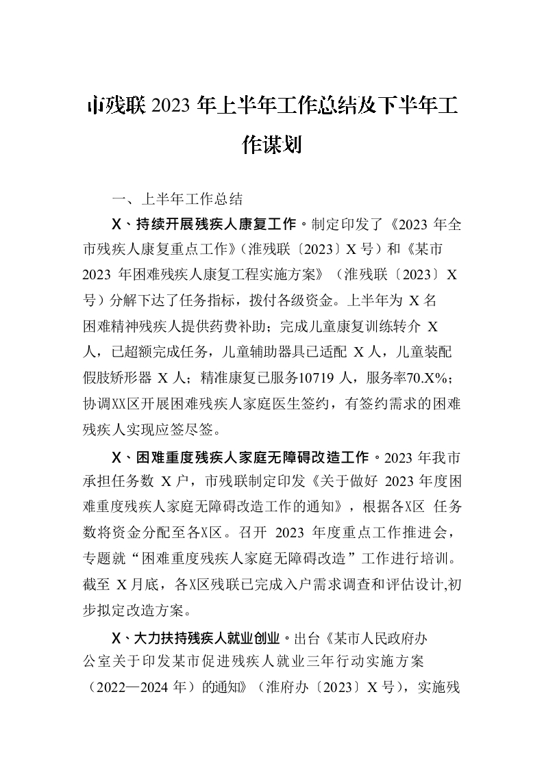 / 市残联2023年上半年工作总结及下半年工作谋划(20230710)