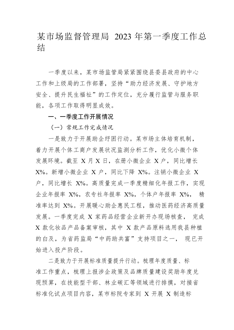 / 市场监督管理局2023年第一季度工作总结