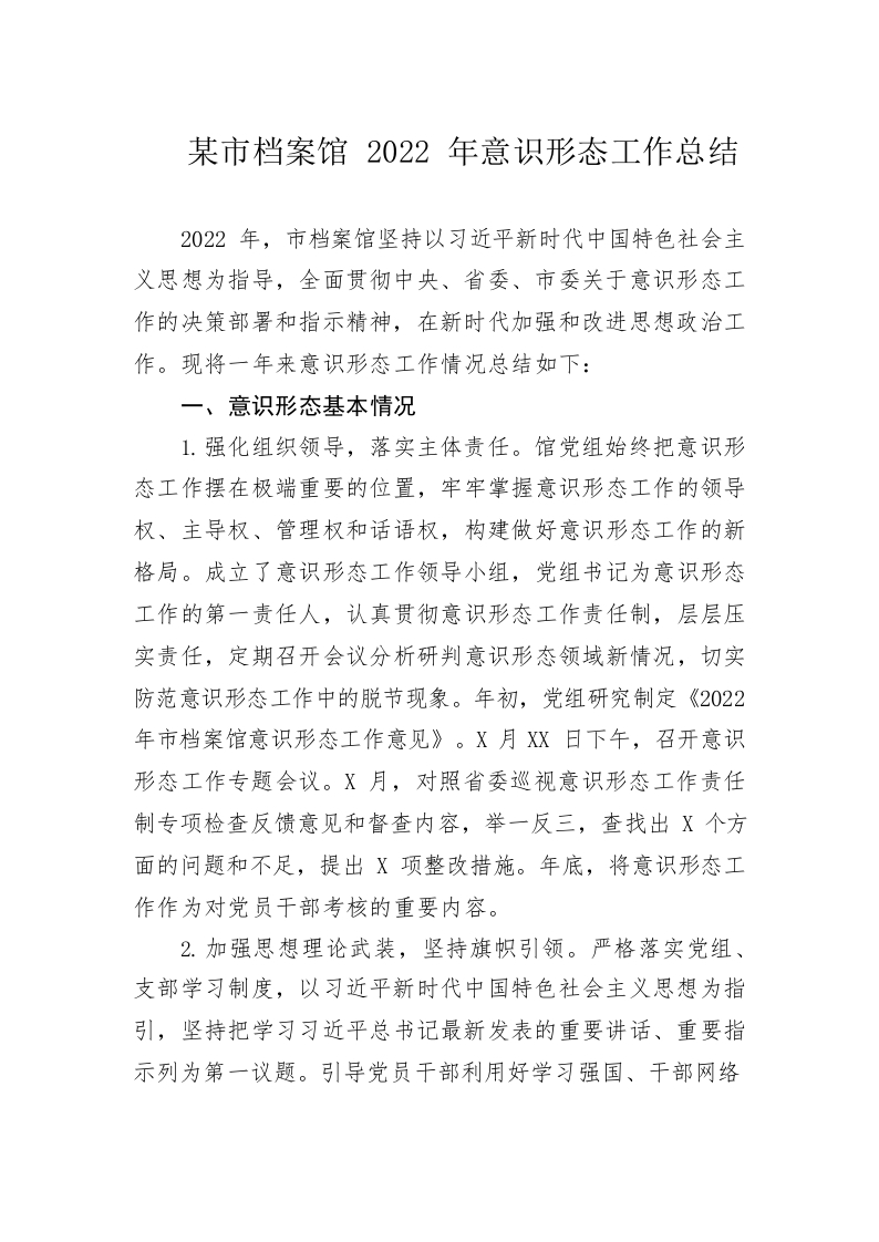 / 市档案馆2022年意识形态工作总结
