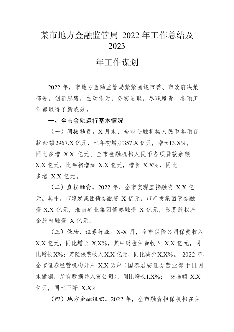 / 市地方金融监管局2022年工作总结及2023年工作谋划