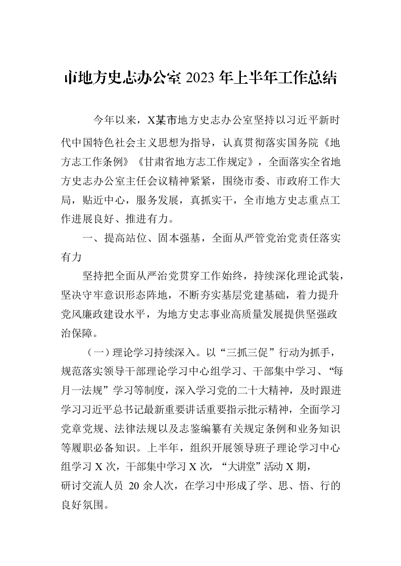 / 市地方史志办公室2023年上半年工作总结(20230705)