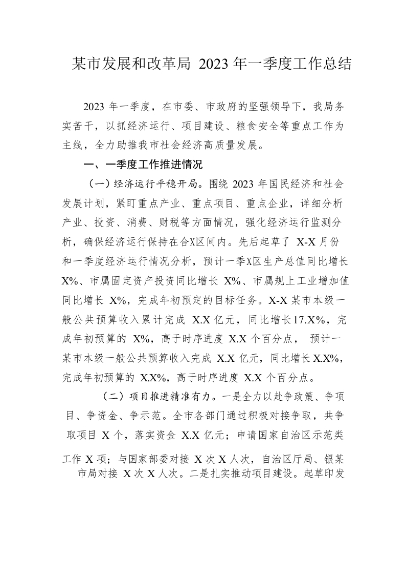 / 市发展和改革局2023年一季度工作总结(20230515)